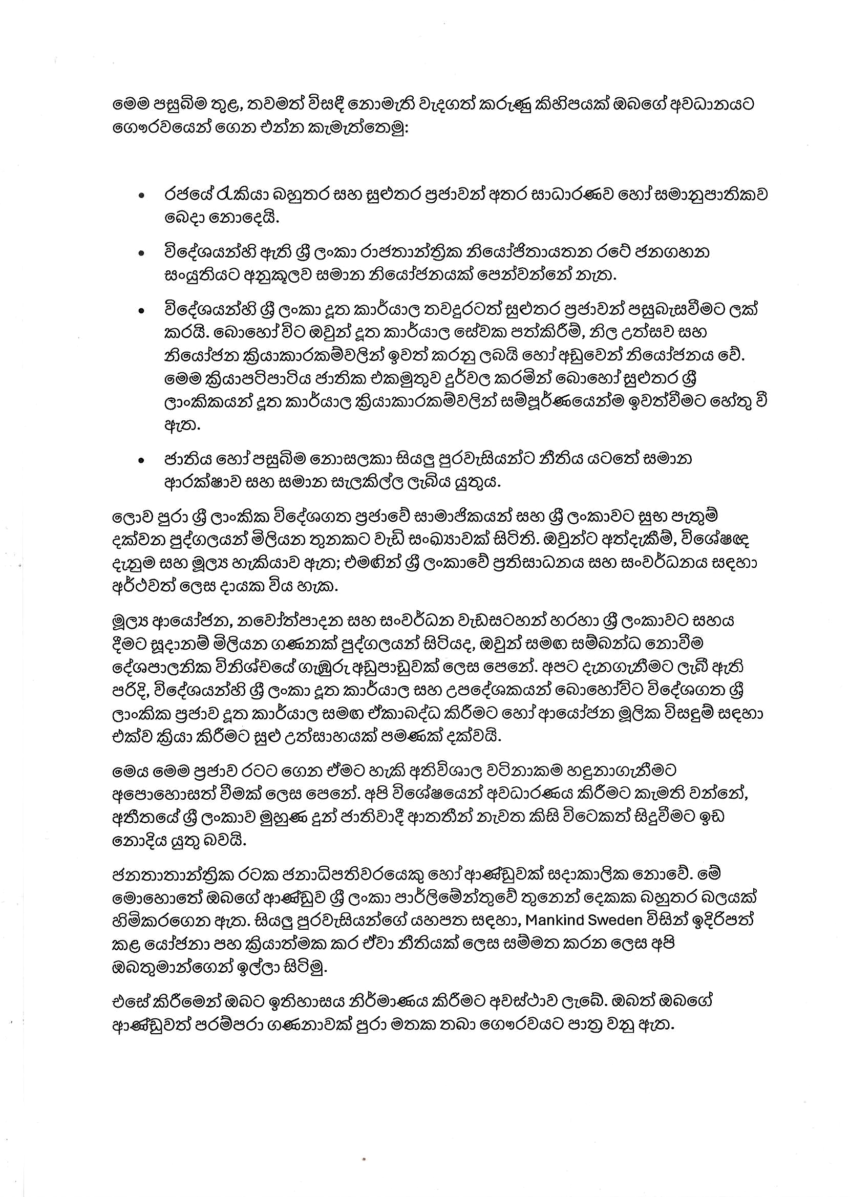 මෙම වෙබ්අඩවිය ශ්රී ලංකාවේ සිටින ශ්රී ලාංකිකයින්, ශ්රී ලංකා ප්රවාසීන් සහ ලොවපුරා පාර්ශවකරුවන් එක් කරයි. අපි ශ්රී ලංකා රජය, එහි අමාත්යාංශ සහ ලෝකයේ විවිධ තානාපති කාර්යාලවල සමඟ නිල සන්නිවේදන බෙදාගනිමු. පුරවැසියන් අපට ගැටලු සහ වාර්තා ඉදිරිපත් කළ හැකි අතර, ඉතා හදිසි සහ වැදගත් ගැටලු ශ්රී ලංකා රජයේ අවධානයට එල්ල කරන බව අපි සහතික කරමු.