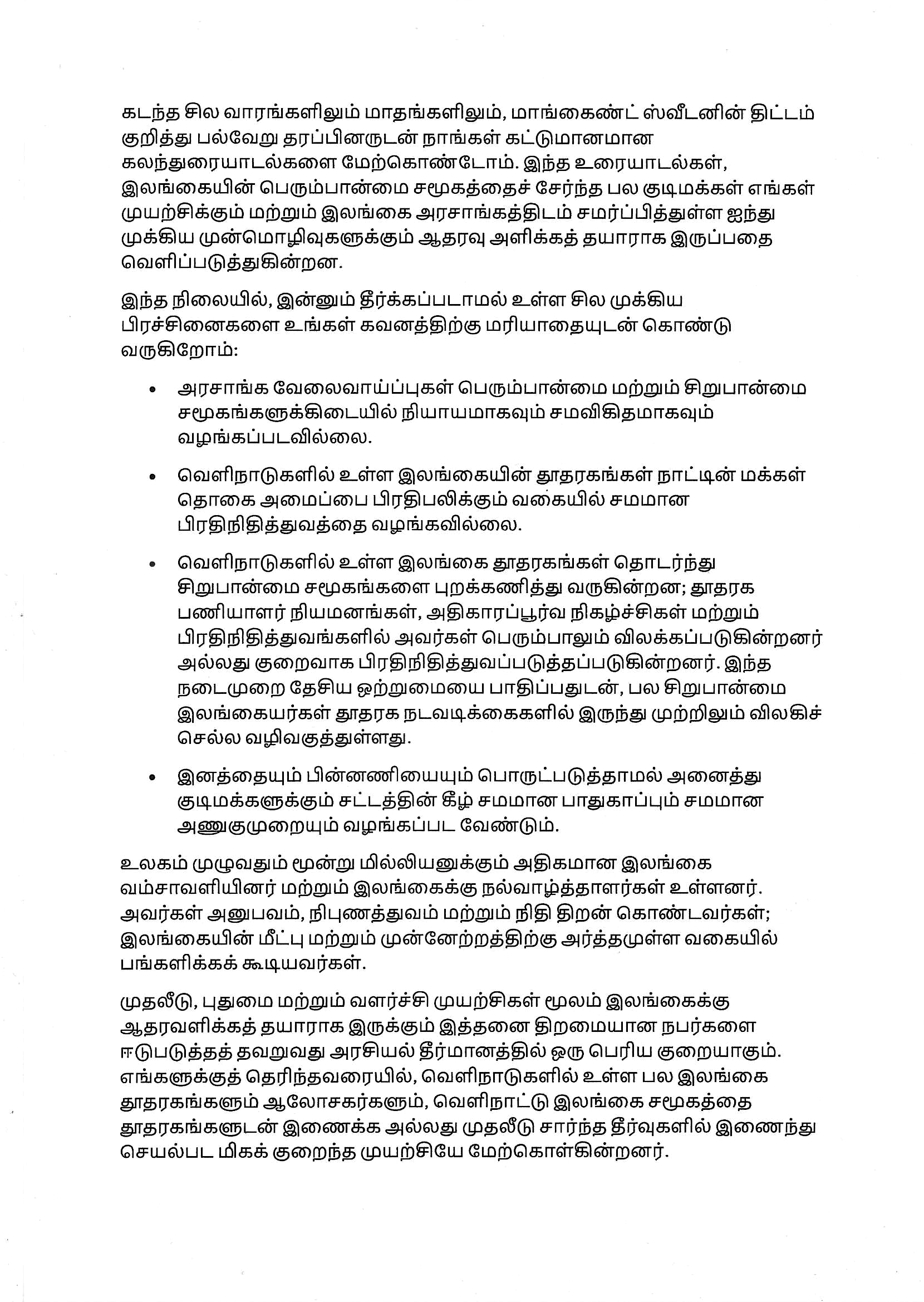 இந்த வலைத்தளம் ஸ்ரீலங்காவில் வாழும் ஸ்ரீலங்கர்கள், ஸ்ரீலங்கன் பரப்புவாழ்வு சமூகமும், உலகமெங்கும் உள்ள ஆதரவாளர்களையும் ஒன்றிணைக்கிறது. நாங்கள் ஸ்ரீலங்கா அரசுடன், அதன் அமைச்சர்களுடனும், உலகம் முழுவதும் உள்ள தூதரகங்களுடனும் அதிகாரப்பூர்வ தகவல்தொடர்புகளை பகிர்கிறோம். பொதுமக்கள் கவலைகள் மற்றும் அறிக்கைகளை எங்களிடம் சமர்ப்பிக்கலாம், மேலும் அவற்றில் மிக அவசரமான பிரச்சினைகள் ஸ்ரீலங்கா அரசின் கவனத்திற்கு கொண்டு செல்லப்படுவதை நாங்கள் உறுதி செய்கிறோம்.